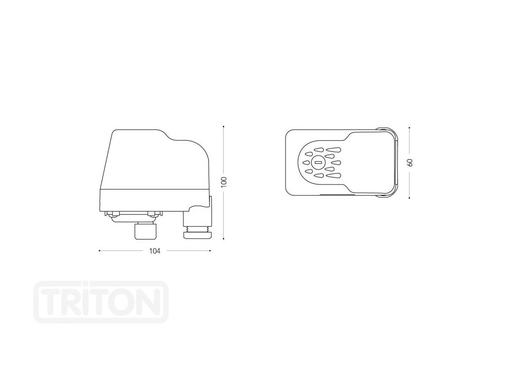 Tlakový spínač s továrním nastavením na 1,5 bar zapínací tlak a 3,0 bar vypínací tlak. Připojení pomocí převlečné matice s vnitřním závitem G 3/8″