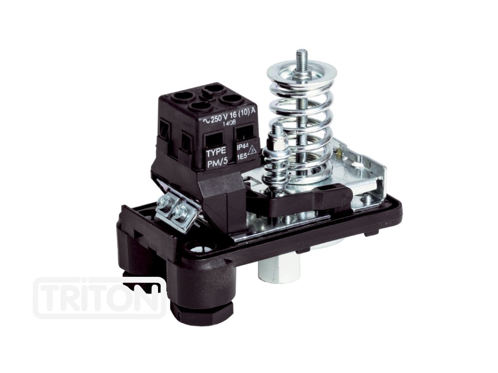 Jednofázové provedení. Spínač automaticky reguluje činnost elektrického čerpadla podle předem nastavených hodnot. Při minimální nastavené hodnotě dochází k sepnutí kontaktů a tudíž k uvedení motoru do chodu; dosáhne-li se maximální hodnoty, dojde naopak k rozpojení kontaktů a čerpadlo se vypne.